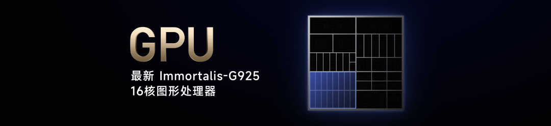玄戒O1 的 GPU 采用 Arm 迄今为止性能最强、效率最高的 Immortalis-G925 图形处理器,并且一次就用了 16 颗,性能非常强大。