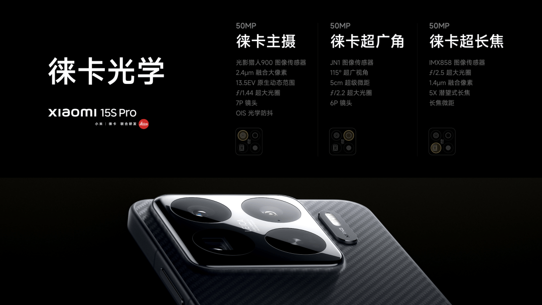 性能和影像,是旗舰手机最重要的两条赛道。小米15S Pro 搭载三颗 5000 万像素的高素质相机,全部继承小米15 Pro 徕卡光学全焦段高速镜头。