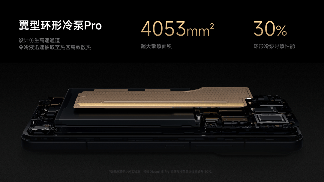 此外,小米15S Pro 还搭载翼型环形冷泵 Pro,通过类似叶脉的仿生结构,加快液体回流,导热性能再提升 30%。无论是长时间视频通话,还是边充电边导航,我们的温度都比 iPhone 低,体验更好。我可以非常自信地说,玄戒O1 的表现非常出色,欢迎大家来评测。