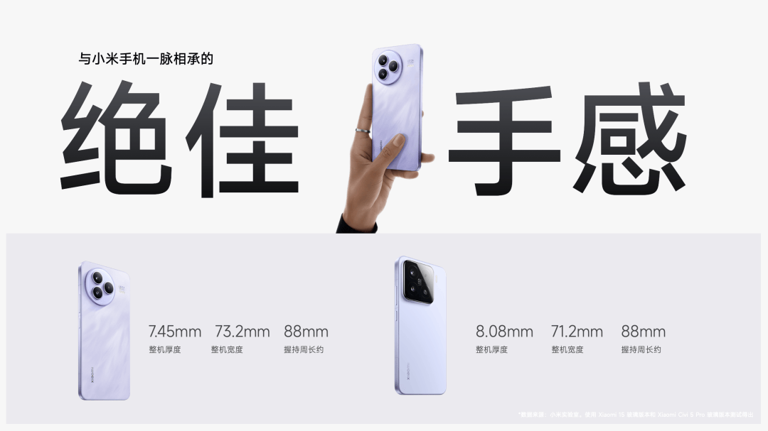 从小米Civi 5 Pro 开始,小米Civi 系列全面转型,正式从“潮流旗舰”变身“全能轻薄旗舰”,在工艺、光学、续航、散热等多维度全方位继承小米15 旗舰特性,为大家带来超预期的体验。