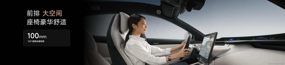 小米YU7 不仅外观好看,车内仍有超预期的大空间,我们以 188cm 假人模型开发,前排头部空间有 100mm、后排头部空间 77mm、膝部空间 73mm。