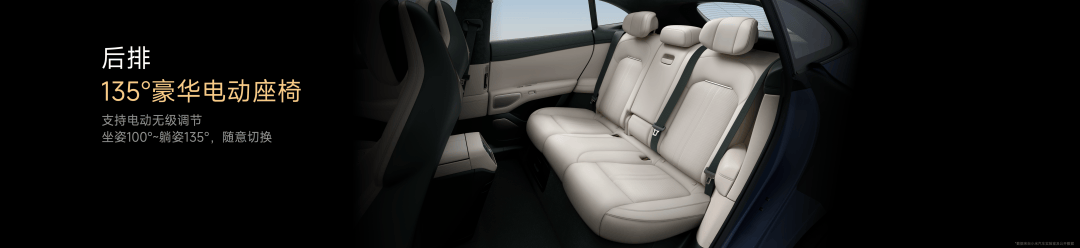 后排乘坐体验也非常出色,靠背角度支持电动无级调节,有 35° 的调节范围,你总能找到最舒服的位置,靠背最大角度 135°,比迈巴赫还要多一度。