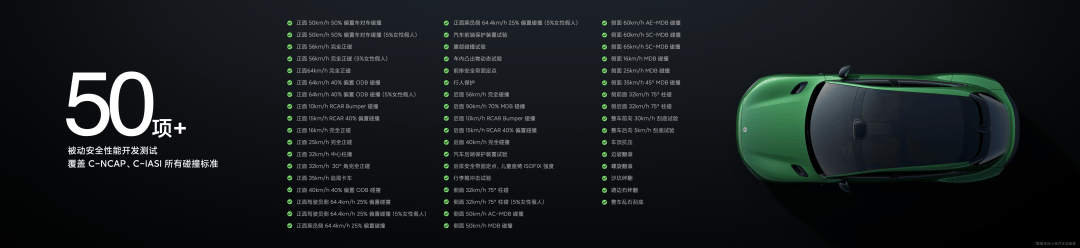 还通过了超过50项被动安全性能开发测试,覆盖C-NCAP、C-IASI所有碰撞标准。
