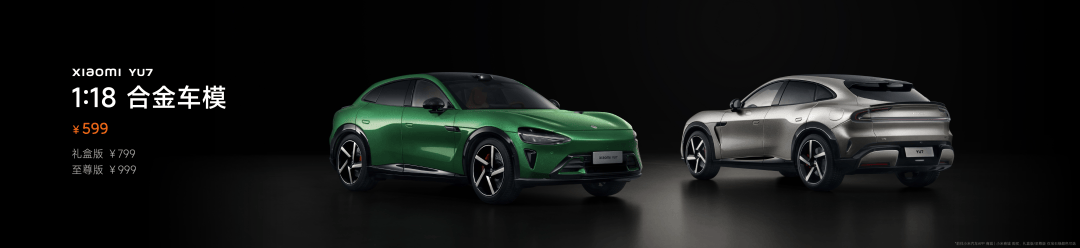 喜欢小米YU7 的朋友,可以看看合金车模,它的四门两盖都可以打开,有宝石绿和钛金属色两款可选,定价 599 元。还有礼盒版和至尊版,现在已经上架。
