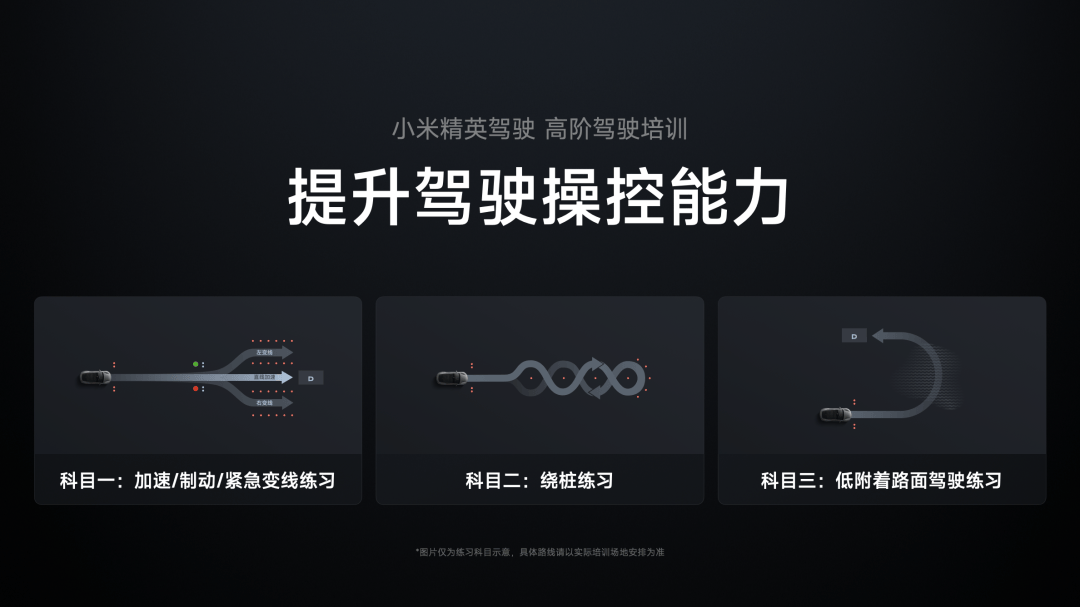 所以,我给大家介绍一个课程:高阶驾驶培训,从理论到实践,帮助用户提高安全驾驶能力。课程包含加速/制动/紧急变线练习、绕桩练习、低附着路面驾驶练习。这几个科目的设计可以帮助学员认识车辆的操作极限,提升安全避险技巧。